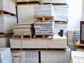 On sale ten pallets of plasterboard panels, as well as a Samsung copier and office furniture